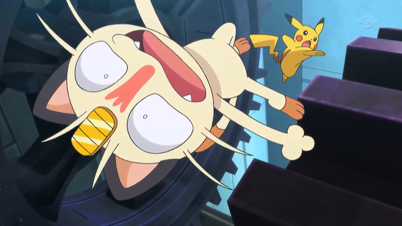 As Satoshi and his friends continue their journey, they visit the Monster Ball Factory. Some of the bigwigs at the factory invite them along for a guided tour through it, but it all turns out to be one of the Rocket Gang's traps! The group falls completely for their lie about doing a maintenance checkup on their monster balls and get all their monster balls stolen, the Pokémon inside included! Since it didn't go into its ball, Pikachu was able to escape, and is now having a grand showdown with Nyarth inside the factory in an attempt at taking the Pokémon back!